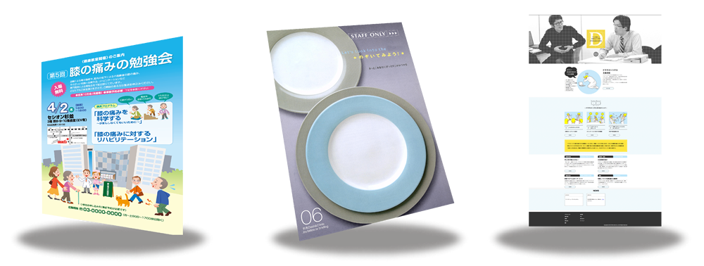 ○チラシ(新聞折込手配代行)○カタログ、リーフレット、店頭ポップ○会社案内、業務案内、サービス案内等のパンフレット ○名刺、封筒○ホームページ制作○写真撮影○動画制作